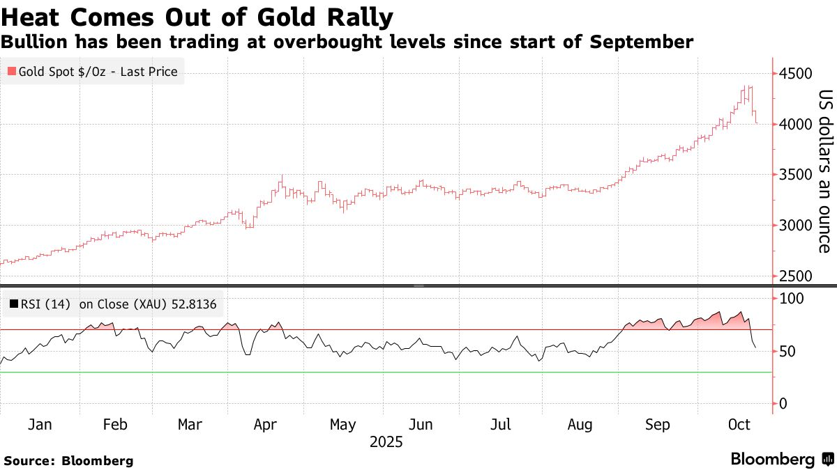 从技术面来看,此轮下跌仍属“修正”,但幅度巨大。AT Global Markets 首席市场分析师 Nick Twidale 表示:“简单来说,市场此前受资金重新配置推动,如今一些大机构在获利了结,引发了止损连锁反应。如果金价有效跌破4,000 美元,我们可能会看到更大规模的抛售。”