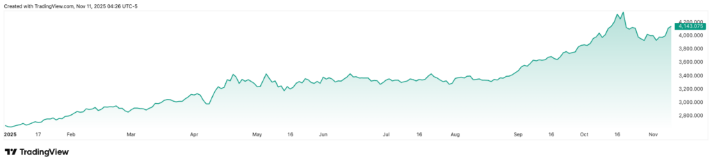 (黄金年初至今价格走势图 来源:TradingView)