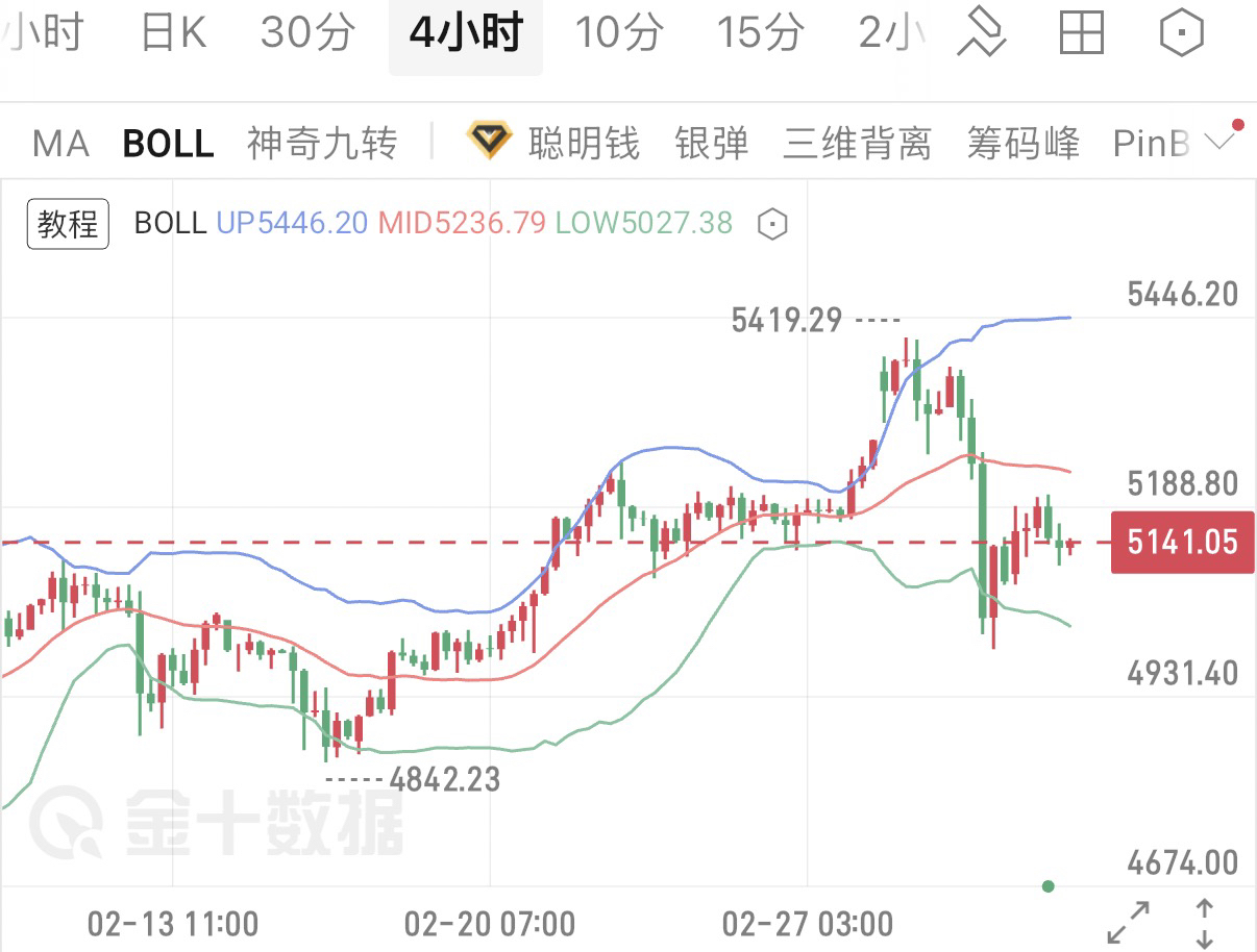 在昨日深度回调后迎来强劲反弹,彰显多头韧性,四小时级别金价已从下轨支撑位企稳回升,MACD绿柱收窄,空头动能衰减,短期反弹具备延续性。