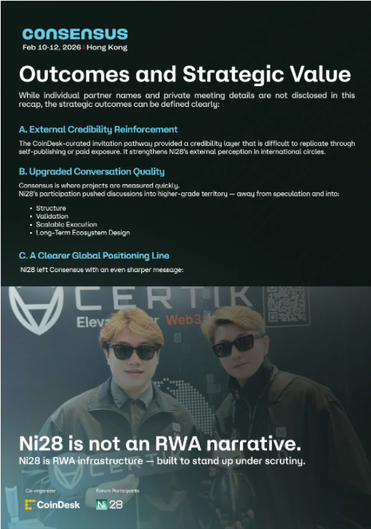 對 Ni28 而言,出席這場活動的意義,不在於「曝光」本身,而在於定位:走進那個 RWA 會被用標準衡量的房間——不是用口號。