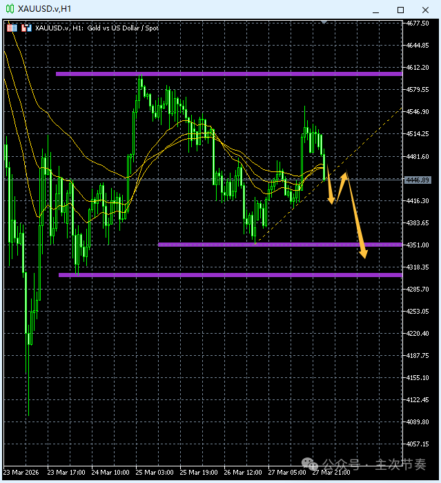 一句话看懂黄金Gold:上周以来的区间范围清晰,短线面临回落下方支撑。
