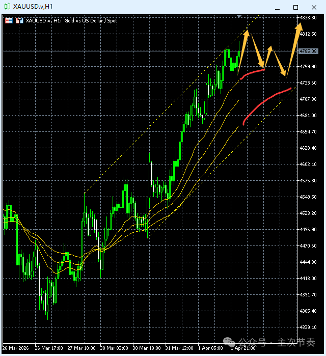 一句话看懂黄金Gold:小步快跑,短线保持稳定上行节奏;明日黄金休市。