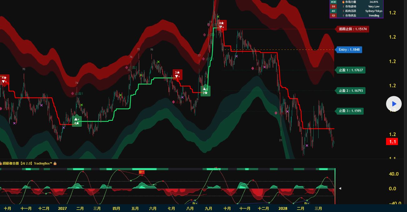 日線複合:超賣,通常意味著在日線低點完成之前,還會有 2–3 天 的橫盤至下跌走勢。這將完成一次微小的修正,隨後將恢復週線級別的牛市趨勢。(熊)