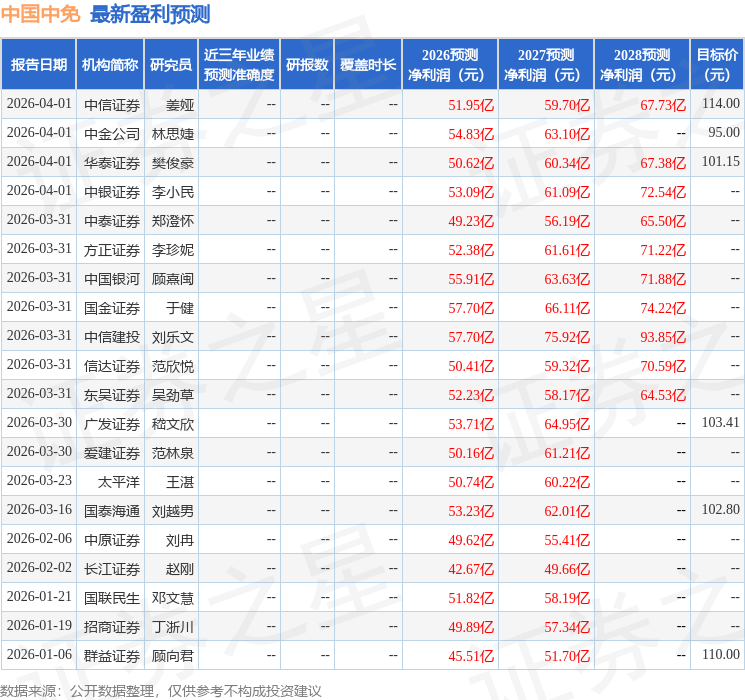 最新盈利预测明细如下: