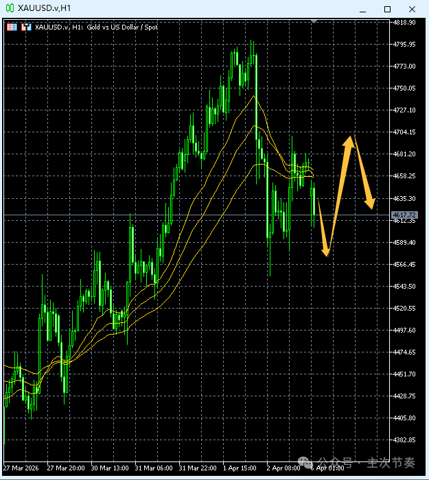 一句话看懂黄金Gold:小幅跳空低开,空方优势不大,还在短线震荡范围内。