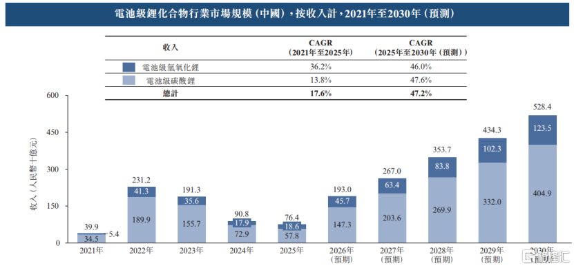 电池级锂化合物行业市场规模(中国),来源:招股书