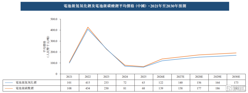 电池级氢氧化锂及电池级碳酸锂平均价格(中国),来源:招股书