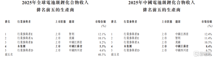 就2025年的销量及收入而言,天华新能为全球及中国第四大电池级锂化合物制造商。
