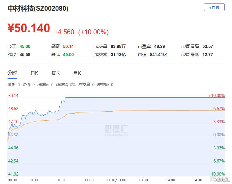 孙哥:净买入中材科技3.337亿元