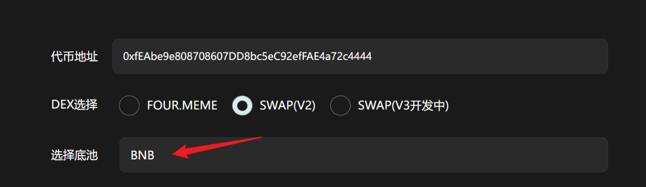 如果你的代币使用的是其他底池代币,可手动输入底池代币地址。