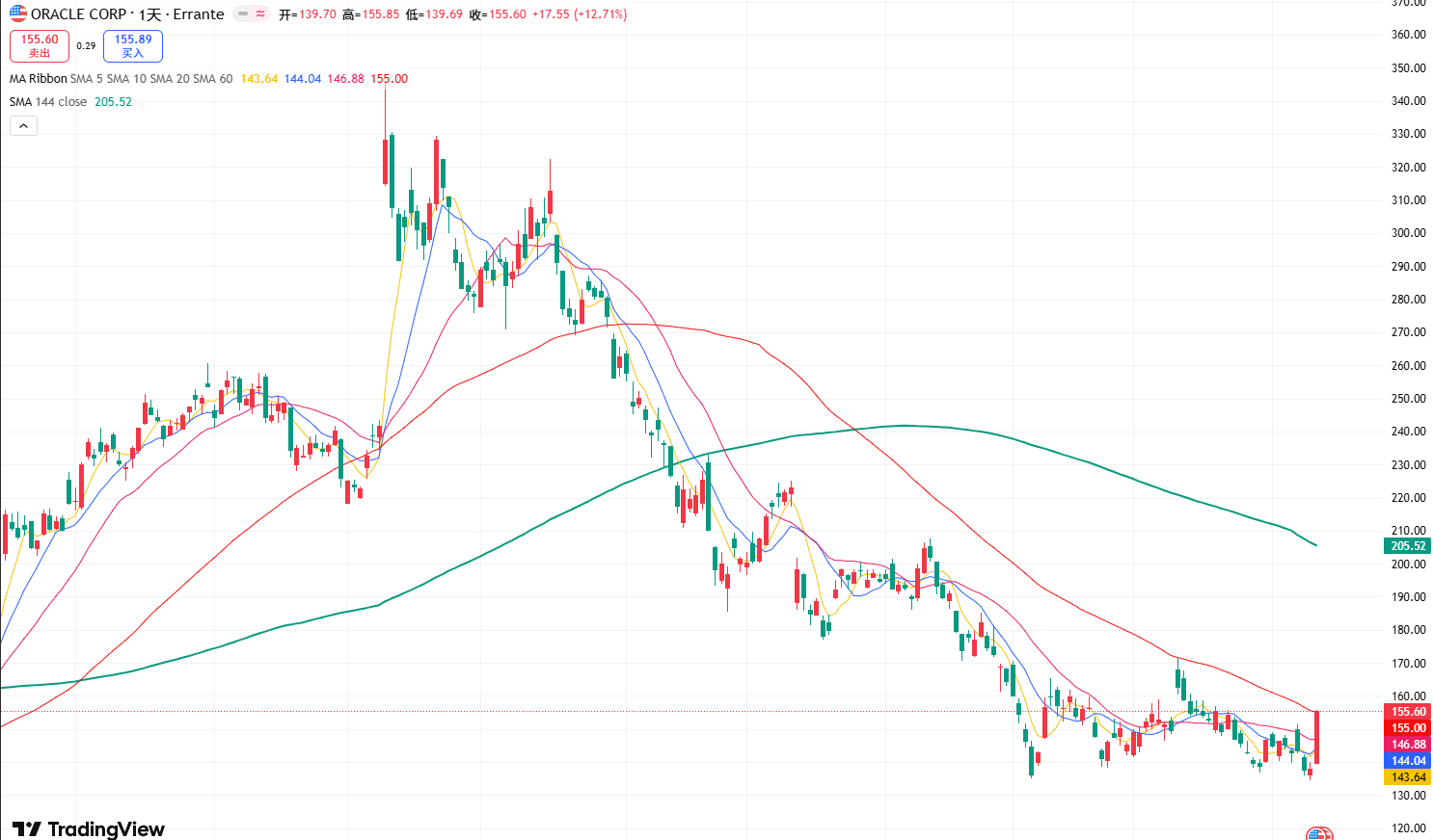 TradingKey - 周一,甲骨文(Oracle,ORCL)股价大涨 12.69%,收报 155.62美元,盘中最高到 155.91美元,当天成交量也明显放大。此次大涨是建立在一整套基本面与预期修复之上的再定价。