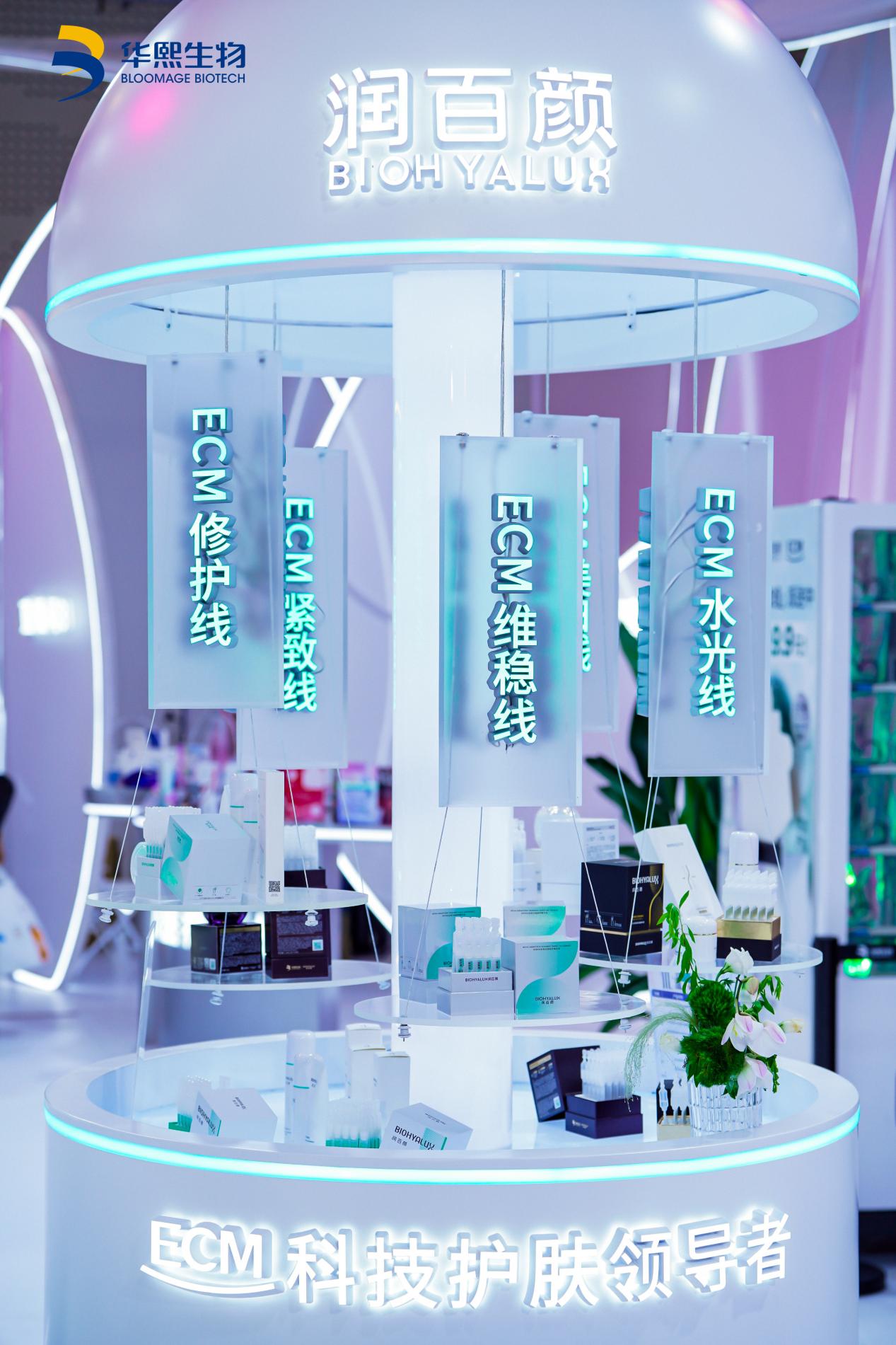 事实上,ECM本身就是包含透明质酸、胶原蛋白等多种功能组分的动态网络系统,PDRN等关键物质也在其调控框架内发挥作用。如果说补充胶原蛋白是为细胞“添砖”,导入PDRN是为细胞“递信”,那么调控ECM就是为细胞“建造有序运转的家园”,决定着各类成分的效用发挥。当前全球美妆品牌多聚焦于ECM系统内的单点突破,而华熙生物则以ECM为底层逻辑,实现各类功能组分的协同效应,这正是其展厅命名的深意——呈现的不是单一产品卖点,而是系统性构建年轻环境的科学范式。