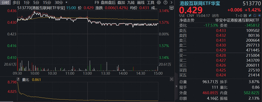 美伊有望展开新一轮和谈,港股提振明显,科网龙头普遍上涨,阿里巴巴-W盘中涨超5%,AI商业化提速,阿里云一个月内第3次官宣涨价;腾讯控股盘中涨超3%,混元3.0大模型预计本月发布。港股AI核心工具——港股互联网ETF(513770)场内价格一度涨逾3%,收涨1.42%。