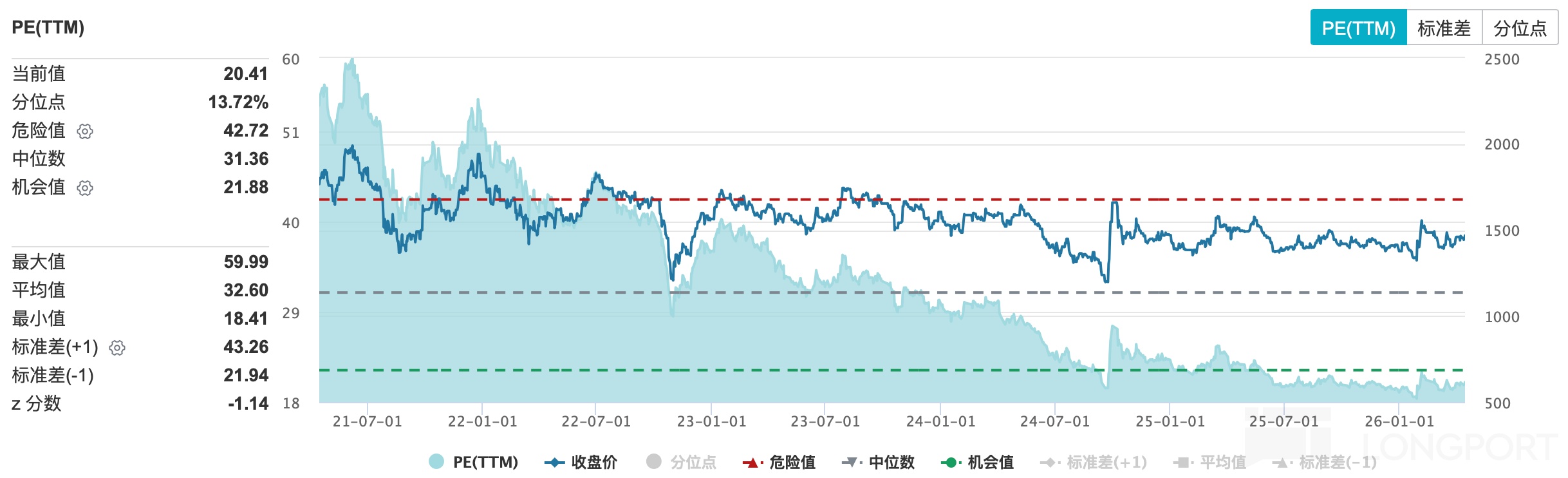 最后,从投资节奏上看,当前对应茅台 2026 年约 19x,考虑到当前渠道压力已经基本释放,批价也基本稳住,2026 年对于茅台来说大概率是轻装前进、改革成效验证的关键时间节点。如果 i 茅台能够成功激活长尾消费者、新增的代售&寄售模式顺利推进,叠加二季度开始的提价(飞天出厂价 +8.6%,自营零售价 +2.7%),茅台的估值有望修复至 20x 以上,因此如果市场短期因为四季度的业绩选择阶段性杀估值,海豚君认为反而会出现上车机会。