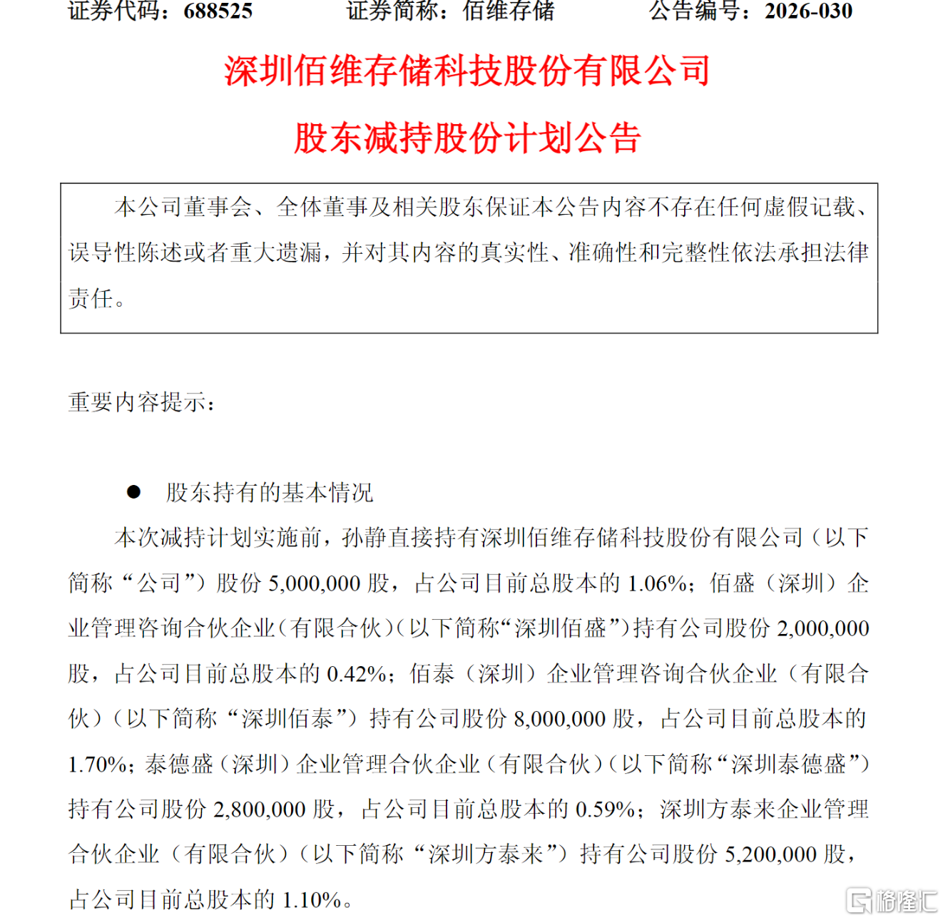 根据公告,公司股东孙静、深圳佰盛、深圳佰泰、深圳泰德盛、深圳方泰来等五名股东计划通过大宗交易与集中竞价方式合计减持不超过941.67万股,占公司总股本不超过2.00%。