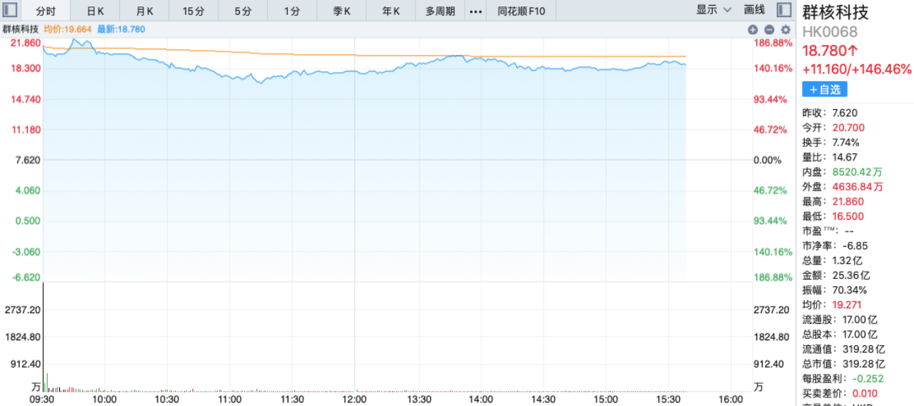 4月17日,“杭州六小龙”之一的Manycore Tech Inc.(以下简称“群核科技”)正式在港交所上市,成为“全球空间智能第一股”。上市首日,群核科技早盘一度大涨近190%,随后涨幅略有回落。截至发稿,该股仍涨超146%,总市值达到319亿港元。
