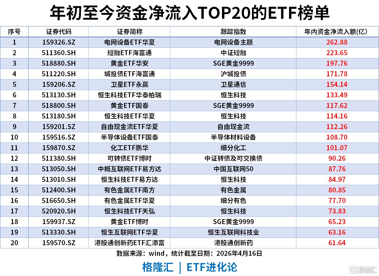 电网设备ETF华夏以262.88亿成为年度吸金王,能源电力赛道全年获资金最高度认可,成为贯穿全年的核心配置方向。