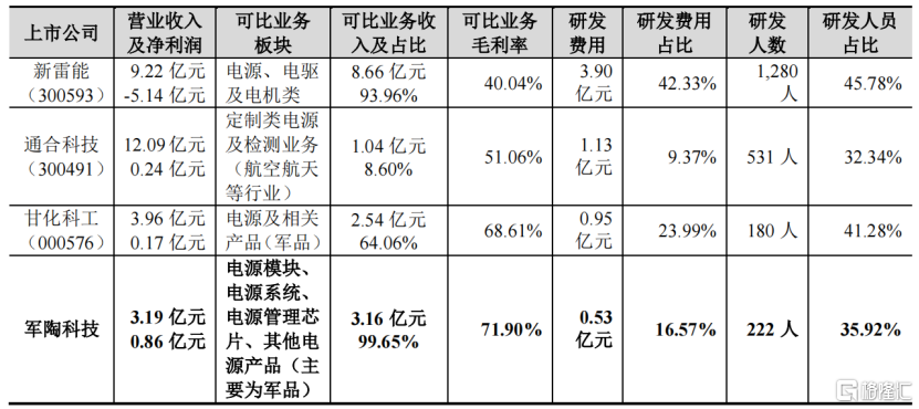 主要原因在于,军陶科技的主要产品是高功率密度、高效率、高可靠性电源产品,主要用于替代Vicor、SynQor、Interpoint等国外品牌,并且这类产品具有较高的技术水平和较长的研发周期,前期投入较大,因此公司产品实现批量供货后往往具有较高的毛利率水平。