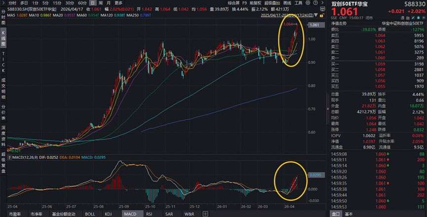 【叒创历史新高!硬科技宽基——华宝基金双创50ETF(588330)劲涨2%!MACD指标提示,做多力量占据主导!】