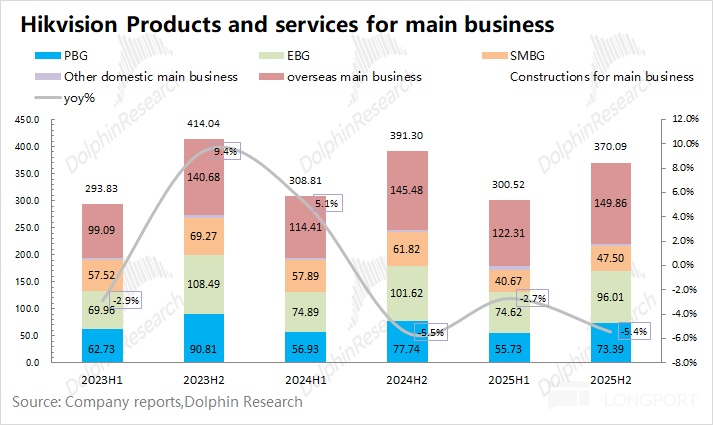 从 2025 年的表现来看,公司的国内三大事业部都在下滑的:其中 PBG 部门(境内公共服务事业群)受政府在公共安全、智慧城市等领域的支出相对谨慎的影响;EBG(境内企事业事业群)和 SMBG(境内中小企业事业群),主要受宏观经济等因素的影响,削减了相应的投资和支出。