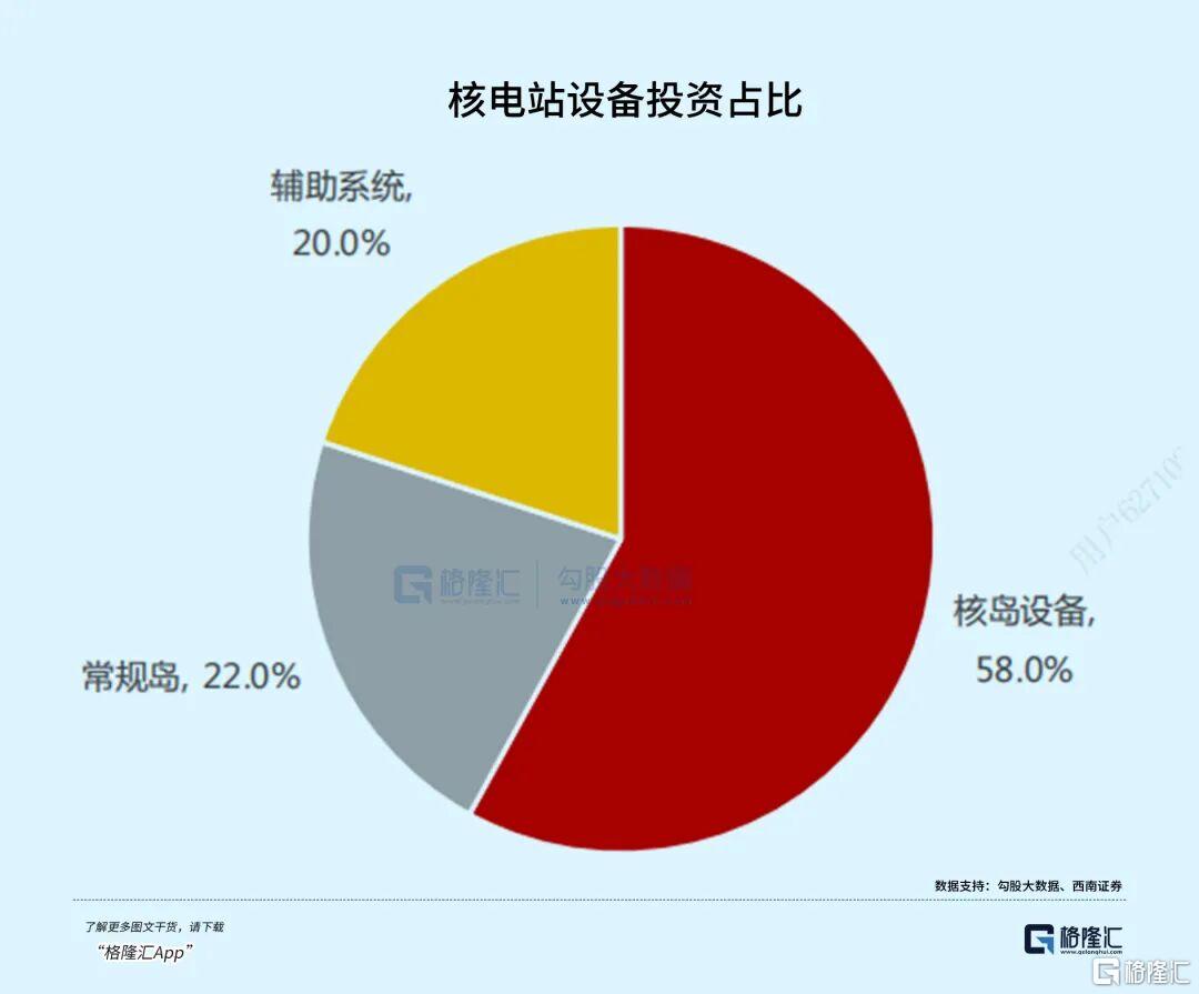 其次是中游设备环节,这是弹性较大的环节。核电站建设成本中,设备购置费用占比高达40%-60%,其中核岛设备占比58%,常规岛设备占比22%,辅助系统占比20%。