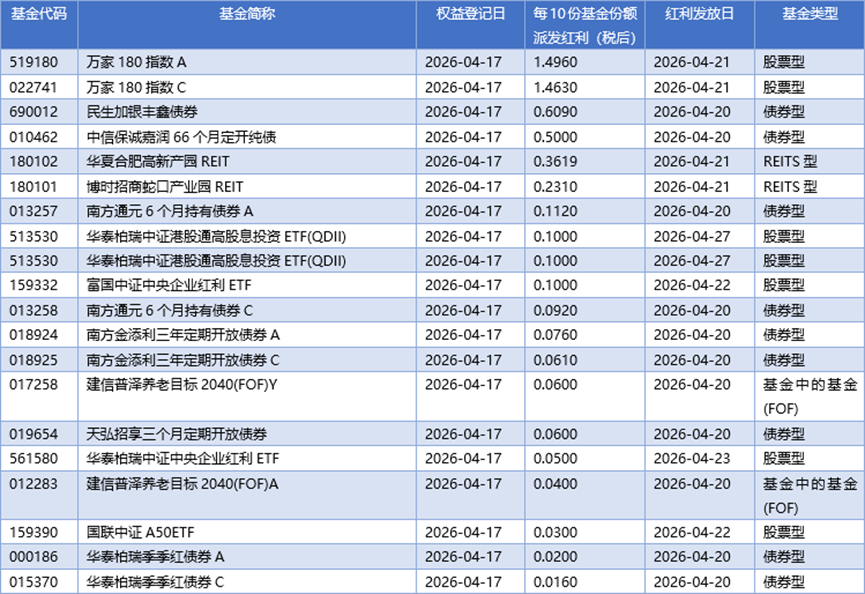 四、04月17日基金分红一览