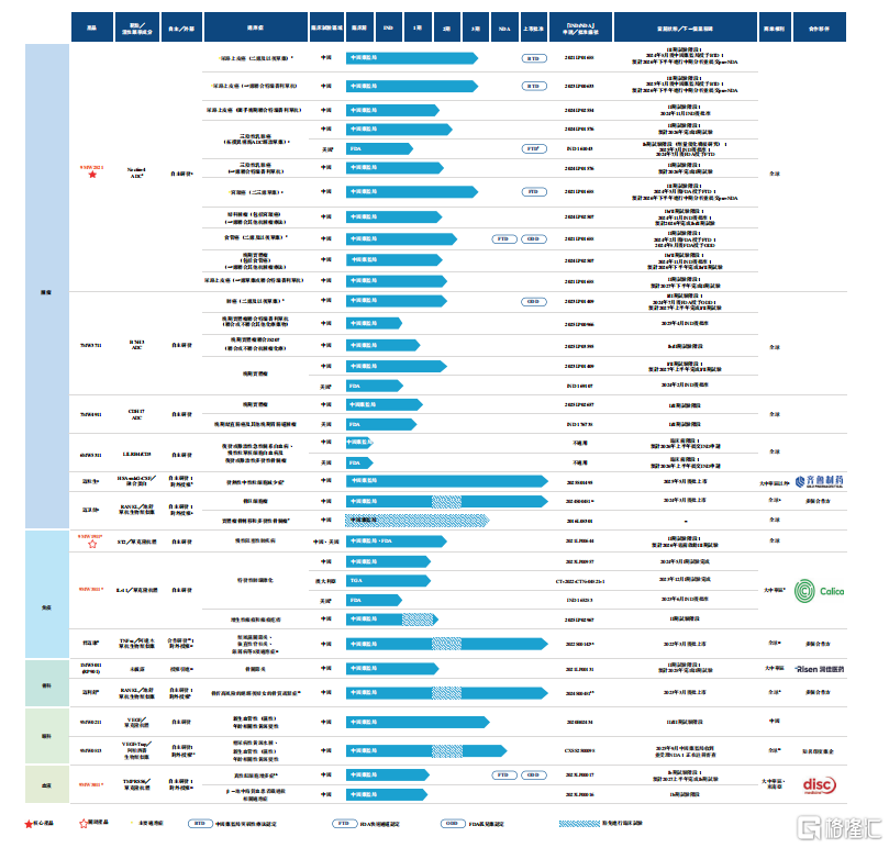 目前,公司拥有14个处于临床前研究、临床研究或上市阶段的重点品种,包括10个创新药,4个生物类似药,专注于肿瘤和年龄相关疾病,如免疫、眼科、骨科等领域。其中,已上市品种4个,境内生产药品注册上市许可申请审评阶段的品种1个,处于III期关键注册临床阶段品种2个,以及处于其他不同临床、临床前研究阶段的品种。