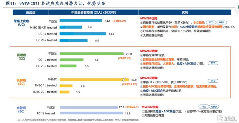 图表四:9MW2821各适应症应用潜力大,优势明显