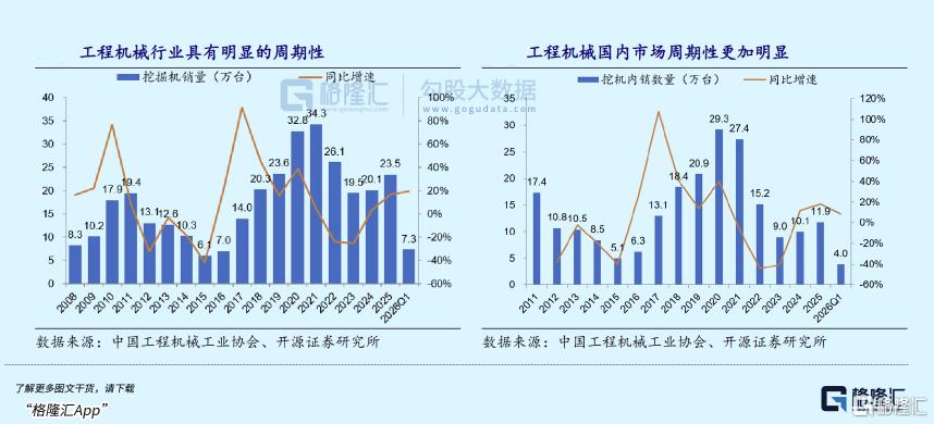 同时,新能源建设、生态治理、矿山修复等新场景不断拓展,工程机械应用边界持续拓宽,需求来源更多元,周期波动被有效平滑。