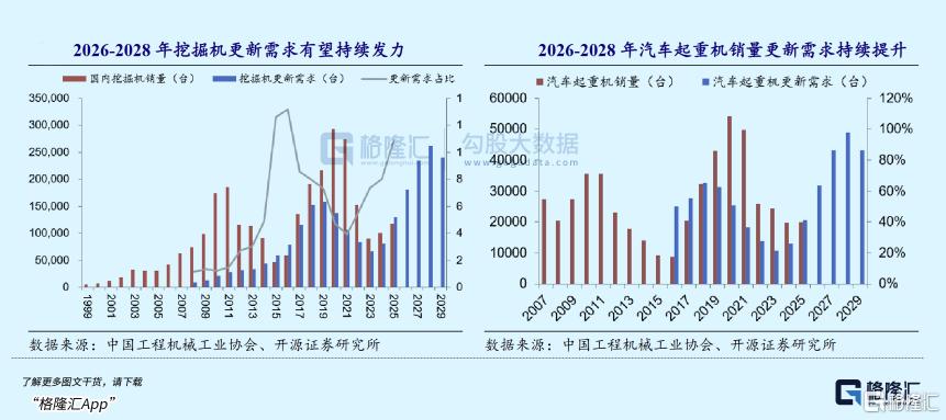 更关键的是,2026-2028年工程机械将迎来新一轮集中替换高峰。工程机械使用寿命约8-10年,上一轮销售高峰在2016-2021年,如今大量设备进入淘汰更换期。