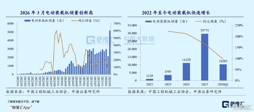 国内电动装载机、混凝土搅拌车渗透率双双突破50%,2025年电动装载机销量同比增长165.3%,新能源搅拌车销量翻倍增长。