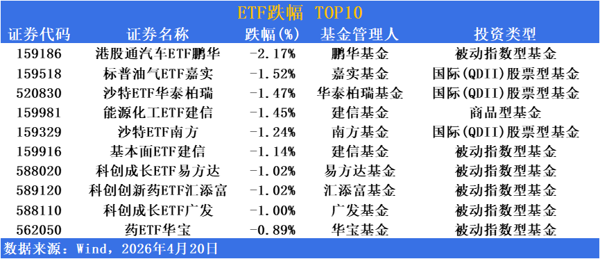 美伊谈判进展推动地缘政治紧张局势阶段性缓和,国际油价自高位小幅回落,油气板块出现获利了结压力。油气主题ETF以约0.5%的跌幅居前,显示市场对能源股短期估值修复后的正常回调预期,跨境油气产品同步微调。
