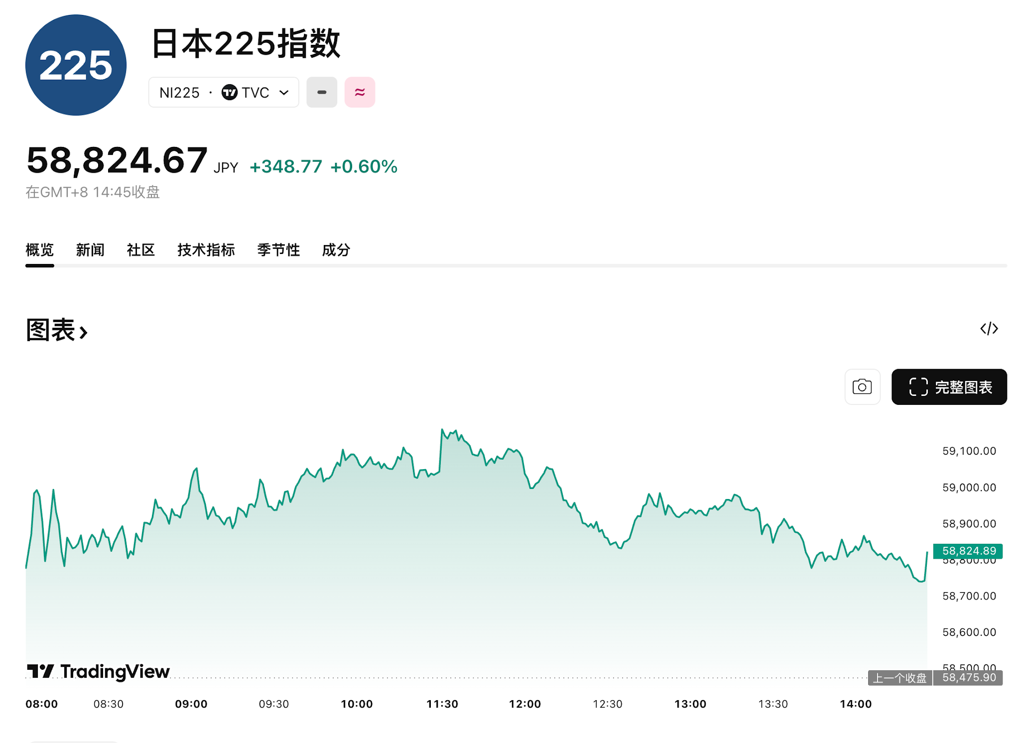 日本股市两大股指反弹。日经225指数收盘上涨0.60%,报58824.89点;东证指数上涨0.43%。迅销、丰田、软银等大盘股涨势明显,拉动日经股指一度上涨近700点,涨至59100点上方,午盘后段涨幅有所收窄。从板块看,东京证券交易所33个行业板块多数上涨,机械、航空运输、纤维制品等板块涨幅靠前,矿业、海洋运输、石油及煤炭制品等板块下跌。