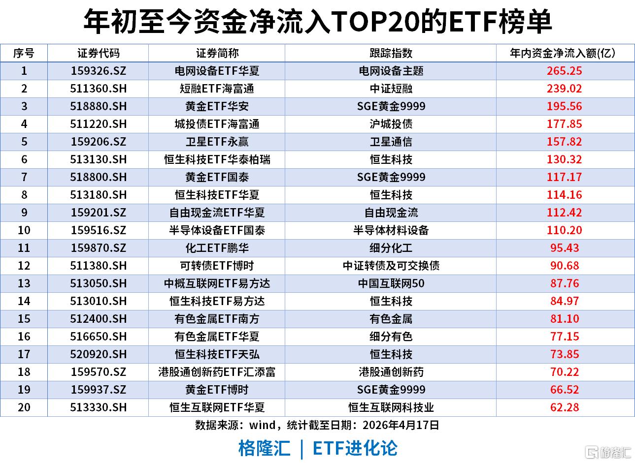 黄金ETF华安、黄金ETF国泰分别流入195.56亿元、117.17亿元 ,短融ETF海富通、城投债ETF海富通合计流入超400亿,避险与稳健需求贯穿全年。