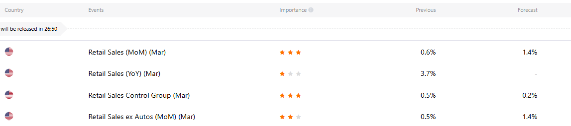 3月零售销售预期数据及前值,来源:TradingKey