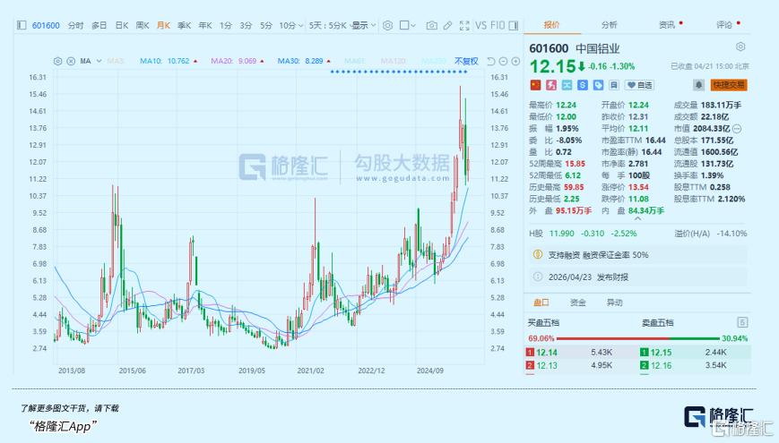 A股此前的电解铝一哥中国铝业,从2020年底部以来股价累计涨幅高达3.4倍(前复权)。云铝股份的期间累计涨幅更是接近8倍。