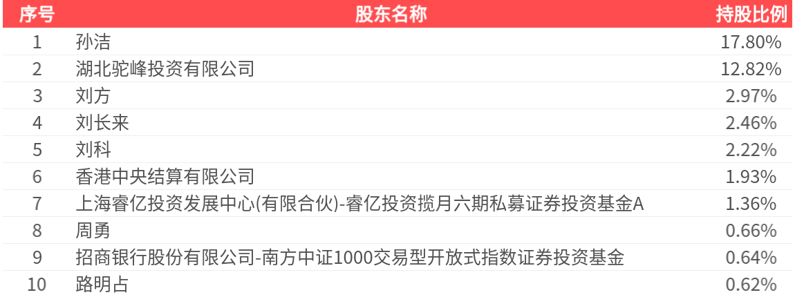 公司股东户数为6.90万户,前十大股东持股数量为5.10亿股,占总股本比例为43.48%,前十大股东持股情况如下:
