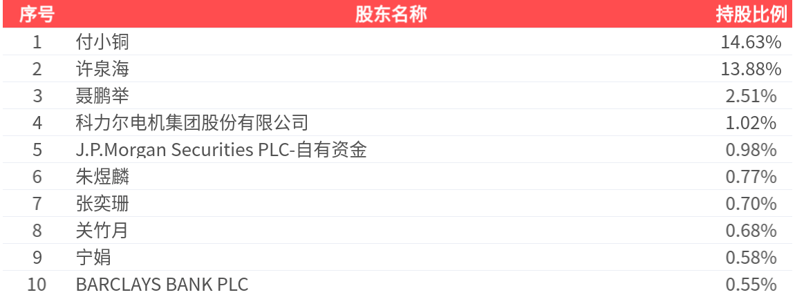 公司股东户数为1.46万户,前十大股东持股数量为3610.95万股,占总股本比例为36.29%,前十大股东持股情况如下:
