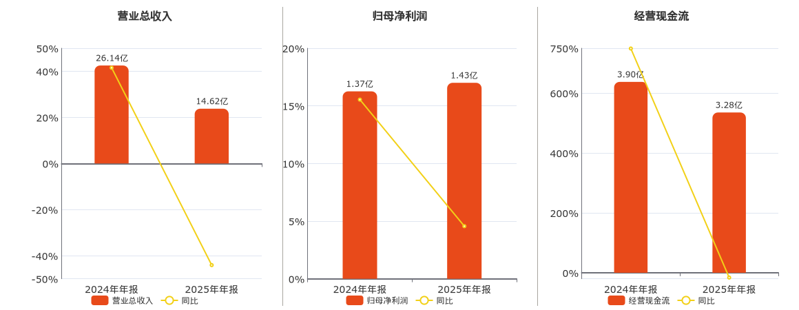 公司营业总收入为14.62亿元。归母净利润为1.43亿元,在已披露的同业公司中排名第3,较去年同报告期归母净利润增加623.58万元,实现3年连续上涨,同比较去年同期上涨4.56%。经营活动现金净流入为3.28亿元。