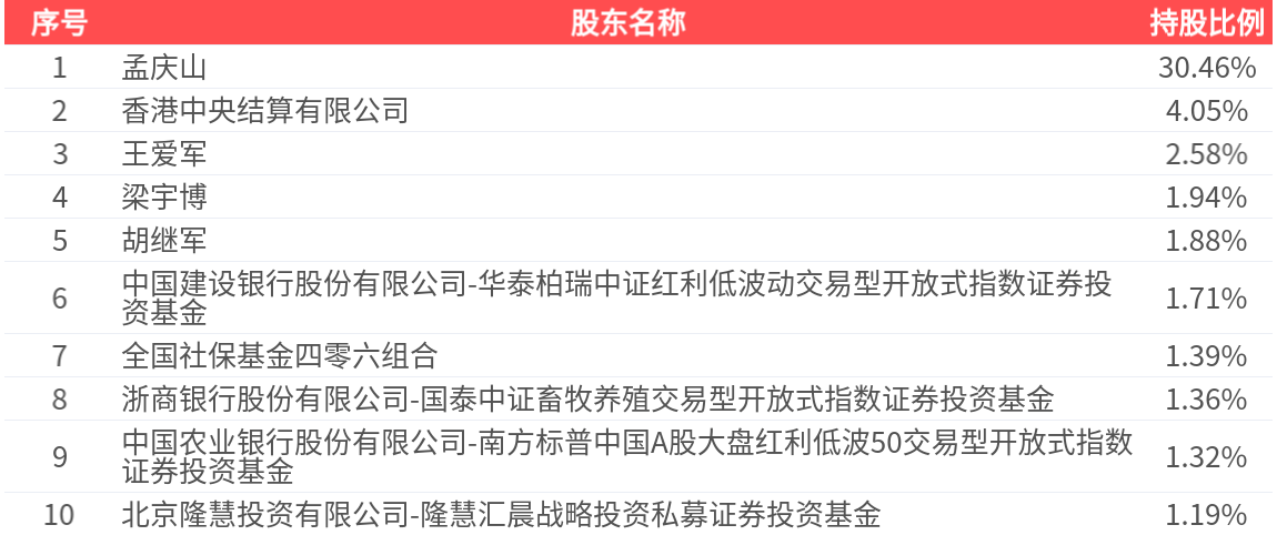 公司股东户数为7.18万户,前十大股东持股数量为13.43亿股,占总股本比例为47.87%,前十大股东持股情况如下: