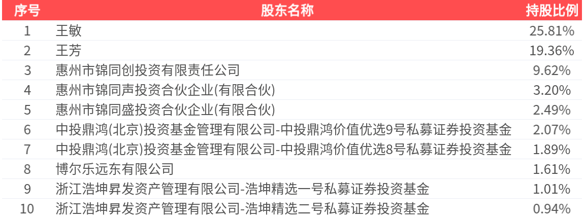 公司股东户数为3273户,前十大股东持股数量为6696.47万股,占总股本比例为68.01%,前十大股东持股情况如下: