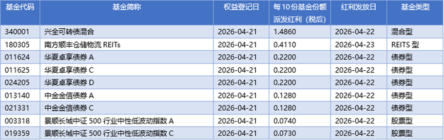 四、04月21日基金分红一览
