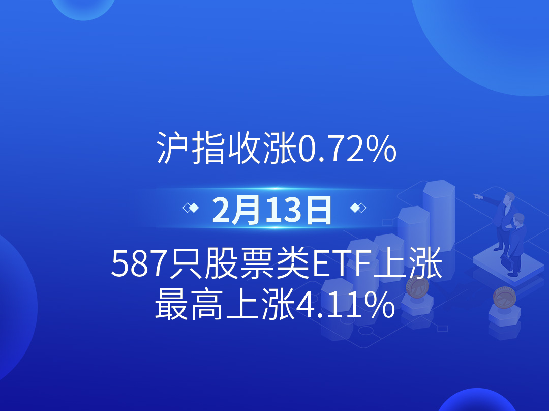 ETF日报 | 2月13日沪指收涨0.72%,587只股票类ETF上涨、最高上涨4.11%