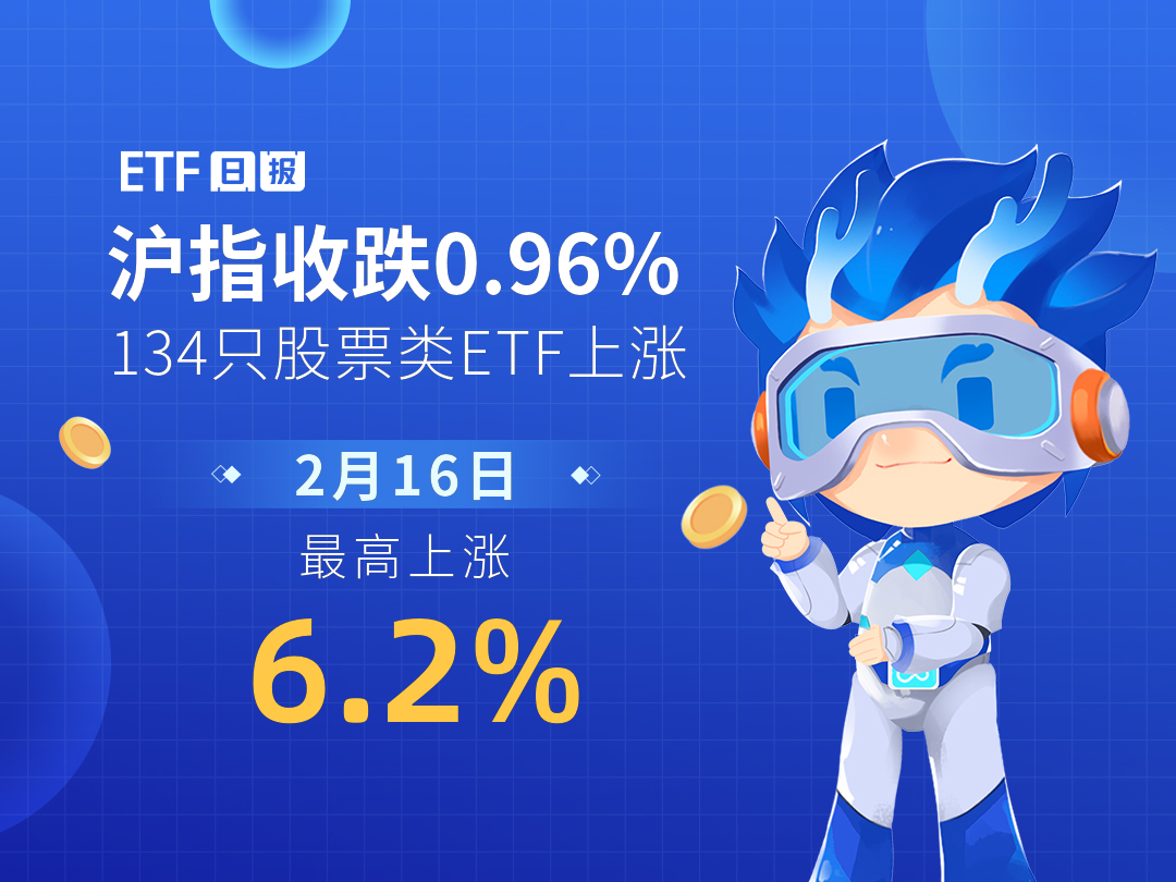 ETF日报 | 2月16日沪指收跌0.96%,134只股票类ETF上涨、最高上涨6.2%