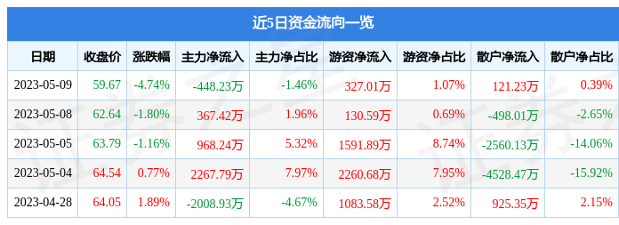 5月9日的资金流向数据方面,主力资金净流出448.23万元,占总成交额1.46%,游资资金净流入327.01万元,占总成交额1.07%,散户资金净流入121.23万元,占总成交额0.39%。