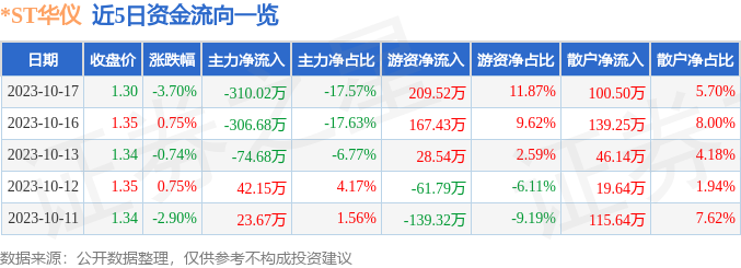 10月17日的资金流向数据方面,主力资金净流出310.02万元,占总成交额17.57%,游资资金净流入209.52万元,占总成交额11.87%,散户资金净流入100.5万元,占总成交额5.7%。