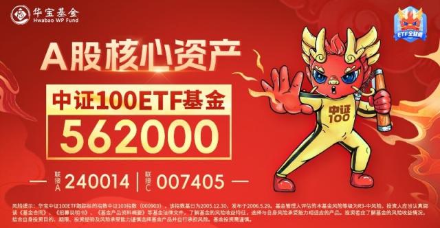 反映各行业核心龙头股整体表现的中证100ETF基金(562000)低开高走,持续拉升,场内价格午盘收涨2.15%!半日成交5261万元。