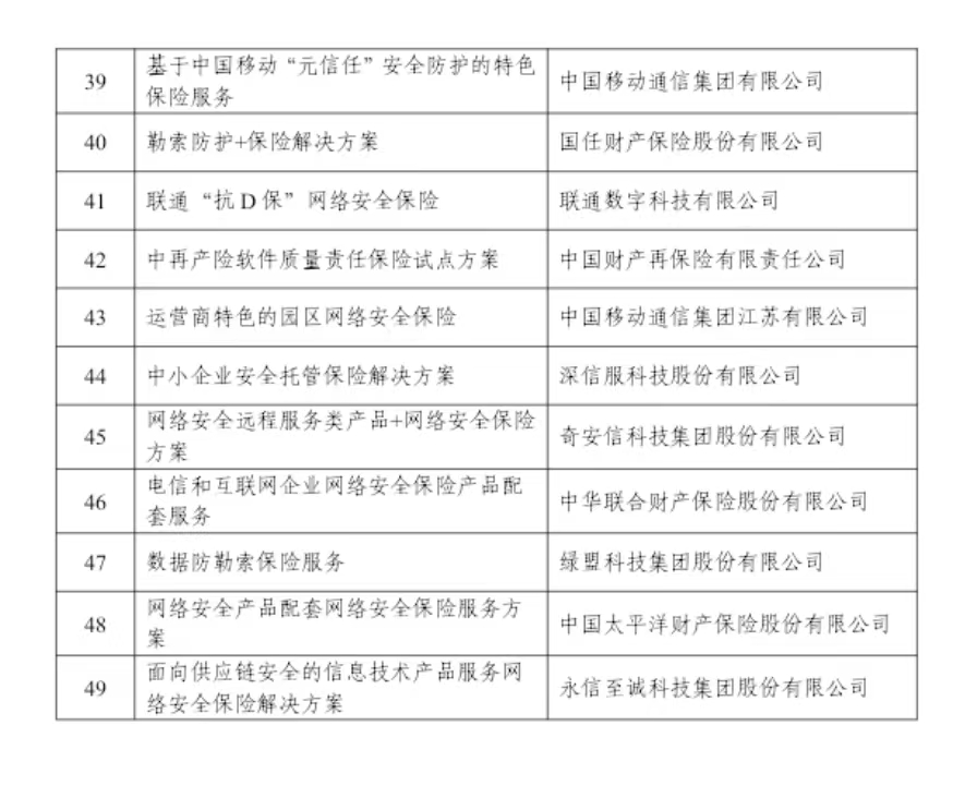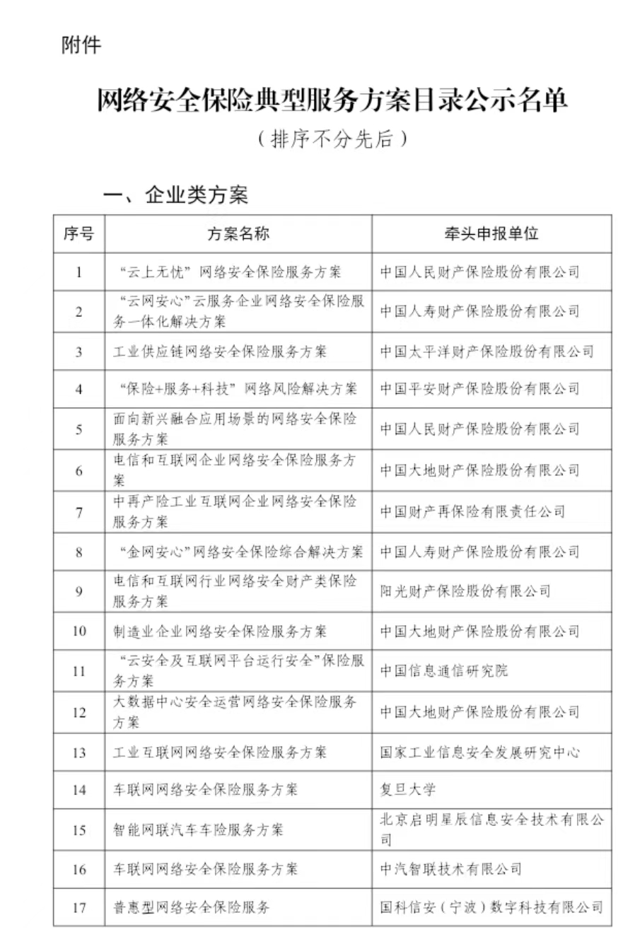 附件:网络安全保险典型服务方案目录公示名单