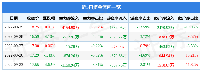 资金流向数据方面,9月29日主力资金净流入4154.98万元,游资资金净流出1684.05万元,散户资金净流出2470.93万元。
