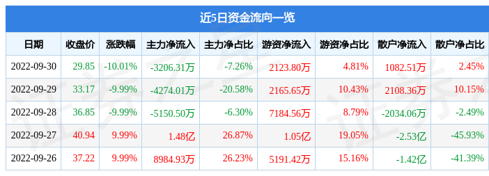 资金流向数据方面,9月30日主力资金净流出3206.31万元,游资资金净流入2123.8万元,散户资金净流入1082.51万元。